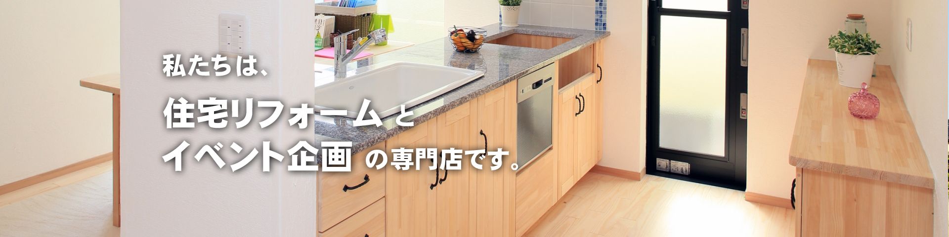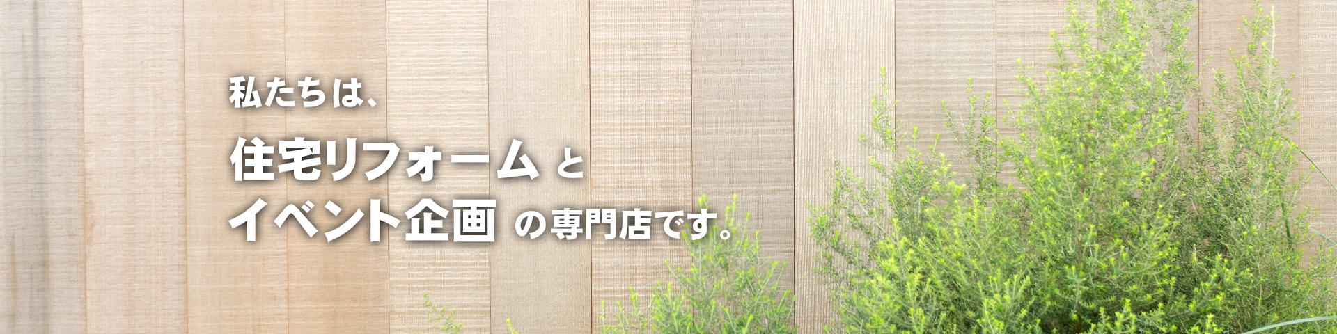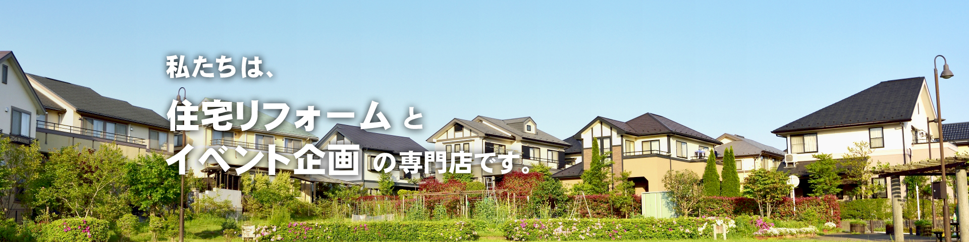 当社は住まいのお悩み解決とイベント企画運営を専門とした地域密着店です。お客様の「困った!」を目的や規模、ご予算等を問わず幅広く解決できるよう、全力を尽くします。