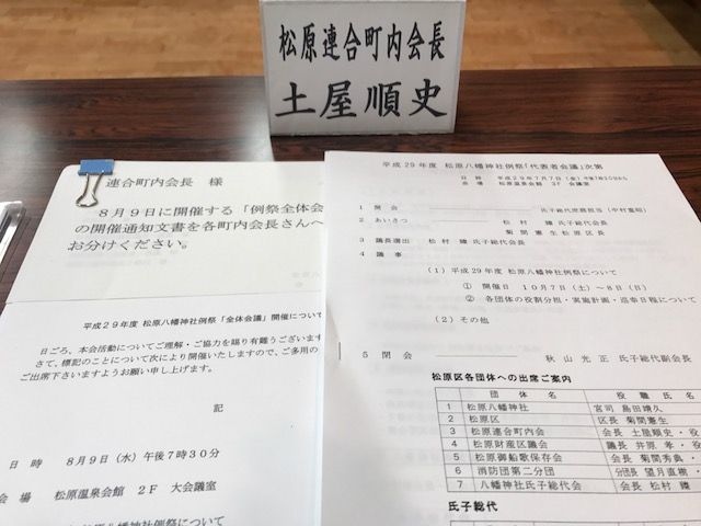 平成29年 松原神社神社例大祭 代表者会議が始まりました、