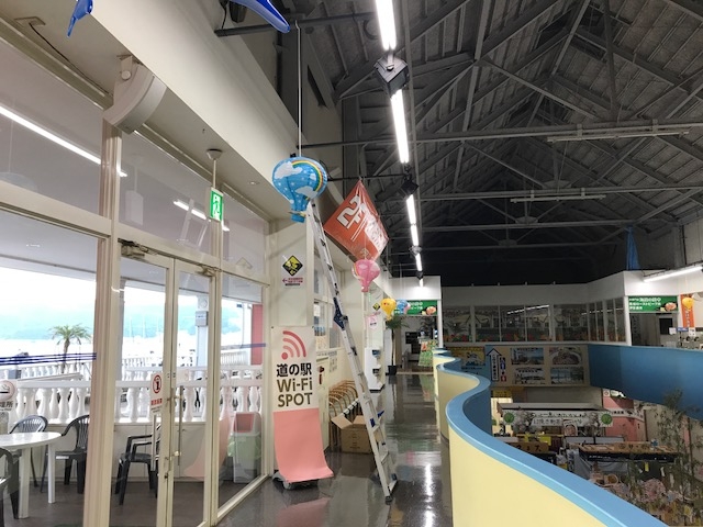春の吊り下げ装飾から、夏の吊り下げ装飾に交換致しました。