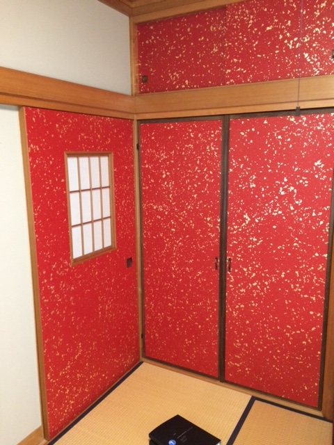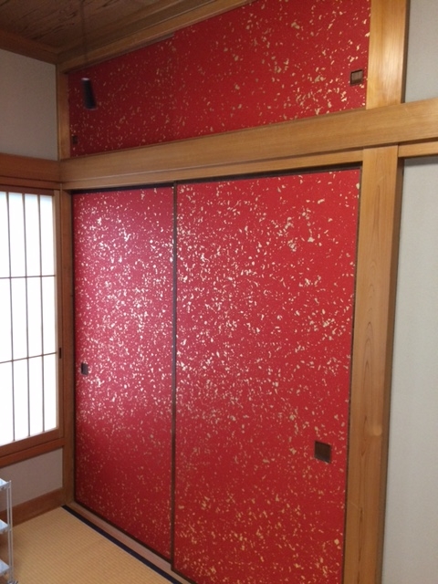 和室に艶やかな カス入りの色和紙襖を貼りました、凄い綺麗ですね(*⁰▿⁰*)