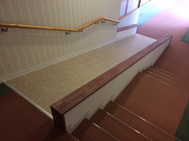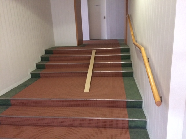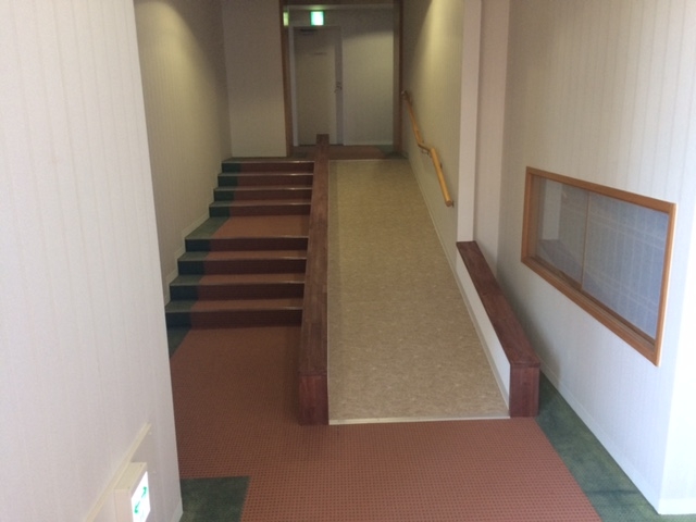 お客様の希望で、勾配がきついですが スロープを新設しました、本来 床は他絨毯と同じ物で施工したいとこですが、勾配がきついのでノンスリップの塩ビシートで施工しました( ^ω^ )