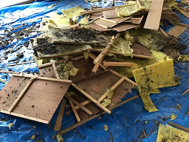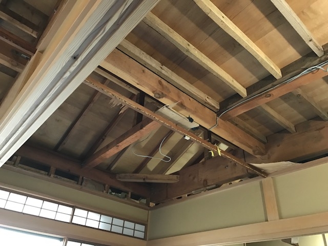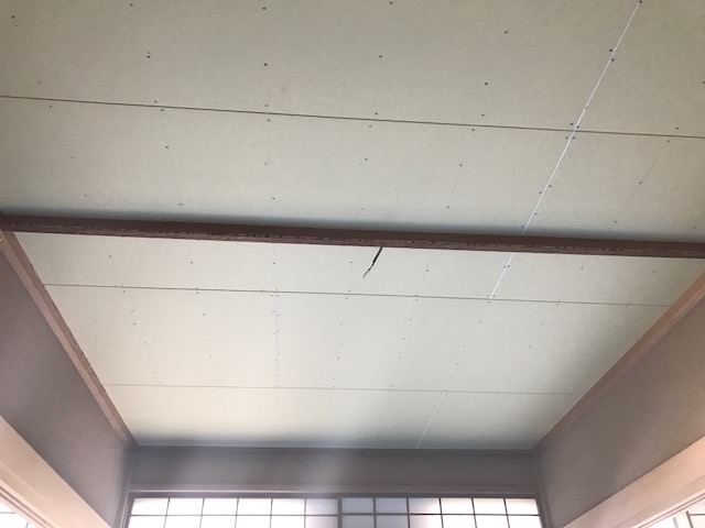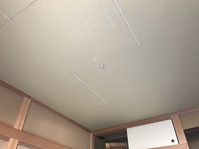 ハクビシンに天井裏をよぉく汚され、フンやカビご酷かったので、式目天井を解体し、野縁下地を組み 不燃ボードを貼りクロス仕上げにしました( ^ω^ )