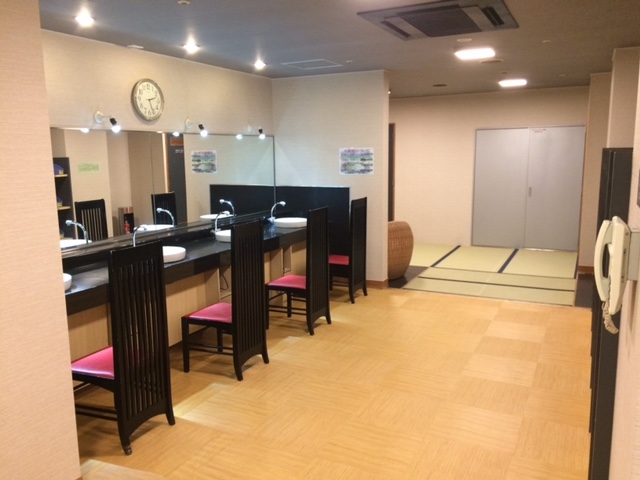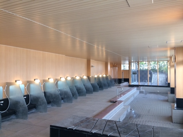 某ホテルの大浴場改修を行いました、全体的に暖色の明るい感じになりました