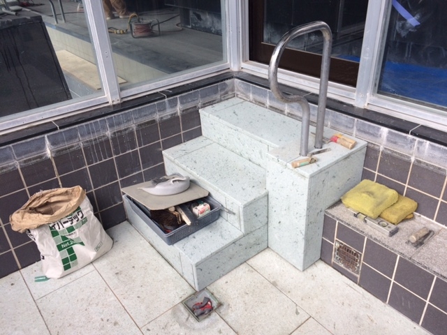 露天風呂ステップ新設工事