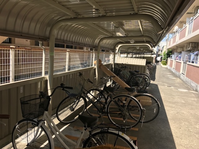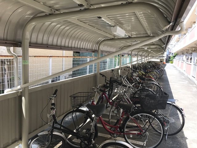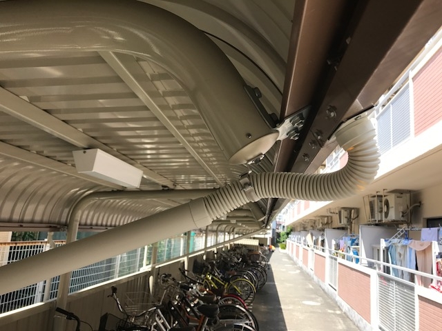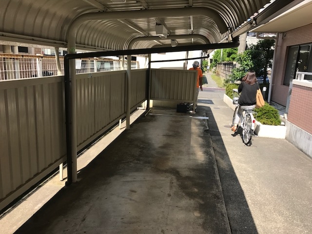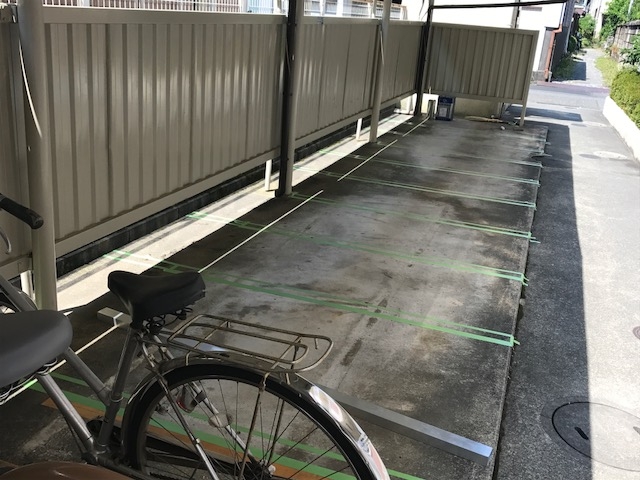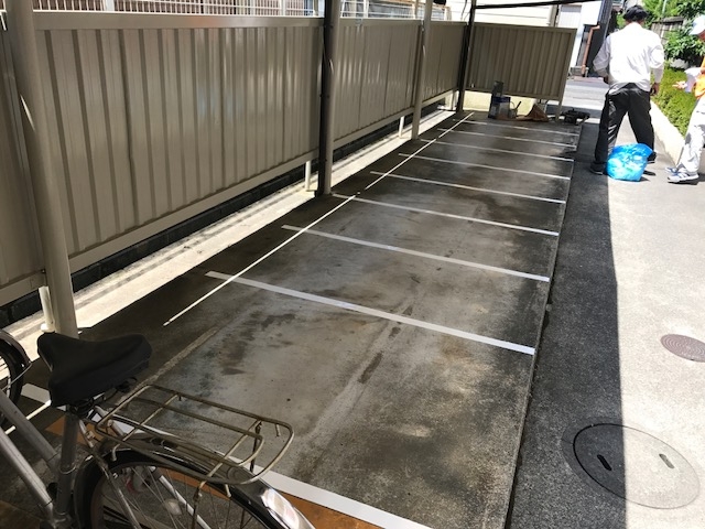 バイク置場ライン、駐輪場雨樋新設工事を行いました( ^ω^ )