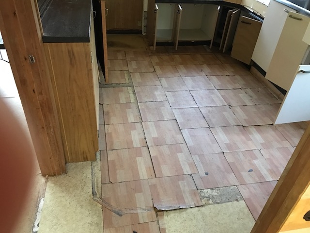 どうしても、水が回りやすいので、ウレタン系の強い接着剤にて床材を施工しました。