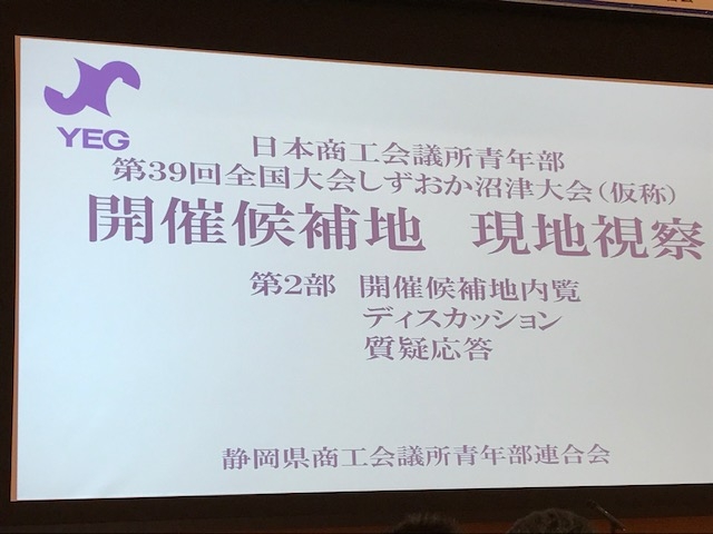 日本商工会議所青年部の第39回 全国大会しずおか沼津大会 開催地現地視察大会に出席しております。すでに会議3時間過ぎてまだまだ続いております、