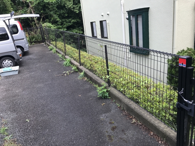 傾斜用フェンスなので、傾斜地でも違和感なく華麗に仕上がりました。