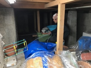 束、土台、大引、垂木、根太、露出床板裏まで消毒致します