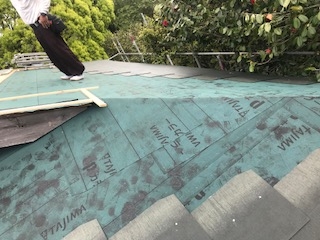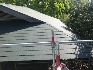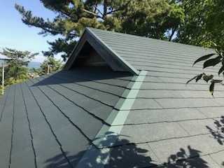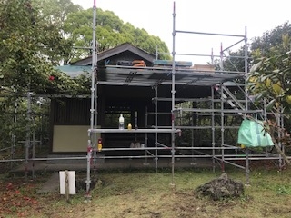 三月に強風にて木が折れ東屋屋根を破損、一部直すと見栄えが悪いので、全面改修。