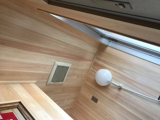 新規に見えますが、古いのと入れ替えて天井壁を増し貼りした工事です。
