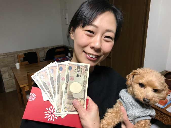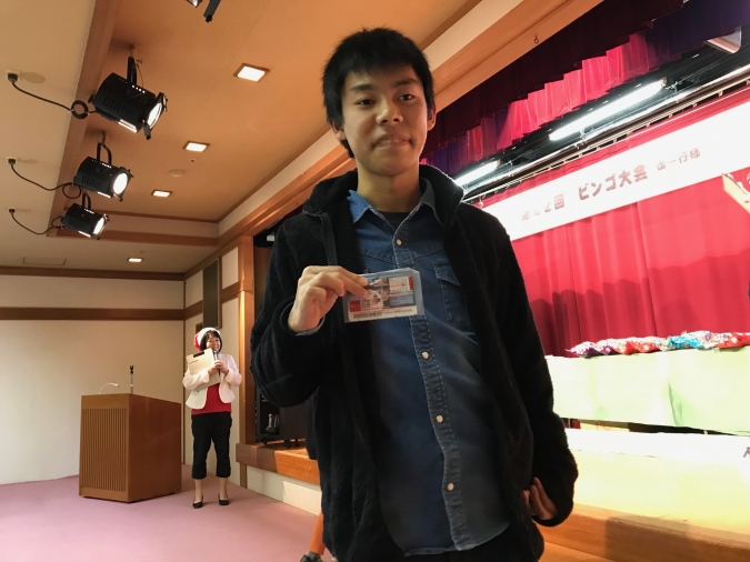 やりました、由香が 一番はじめにビンゴあがって、特賞の現金五万円をゲット✨