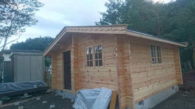 先日ログハウスを設置工事をしました。