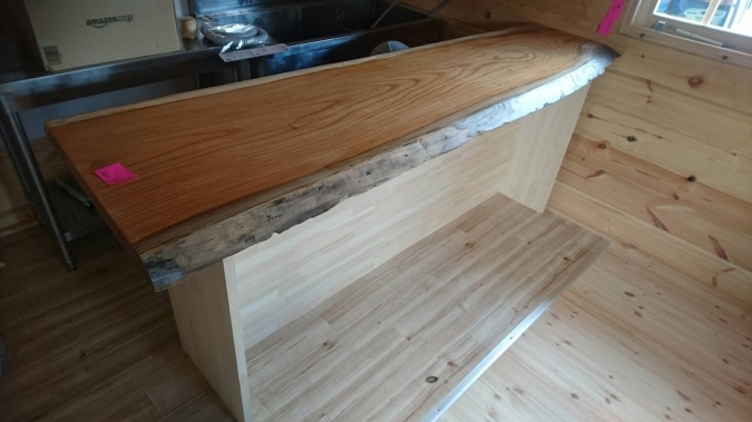 先日 お客様がけやきの一枚板をもっているとのことだったので、カウンターの天板に加工しました。