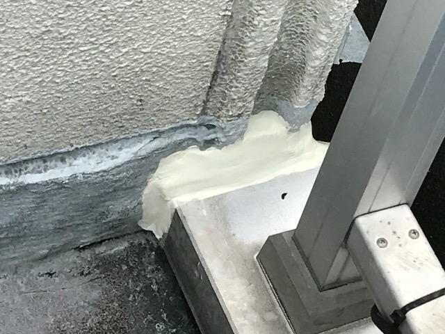 シート自体はコストが高く、樹脂なので耐候力は弱いですが、雨水をバッチリ抑えてくれます。 そのため、耐候用のトップコート(保護防水)が必要になります。