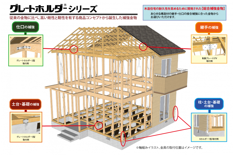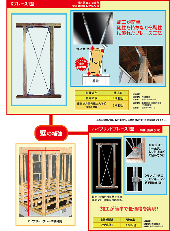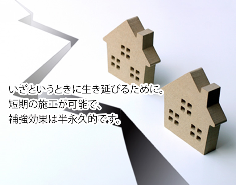 当社では、最新の耐震補強工法を組み合わせ、可能な限りの低価格・短納期での耐震補強を行っています。