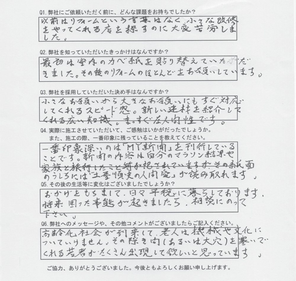 以前はリフォームという言葉はなく、小さな改修をやってくれる店を探すのに大変苦労しました。